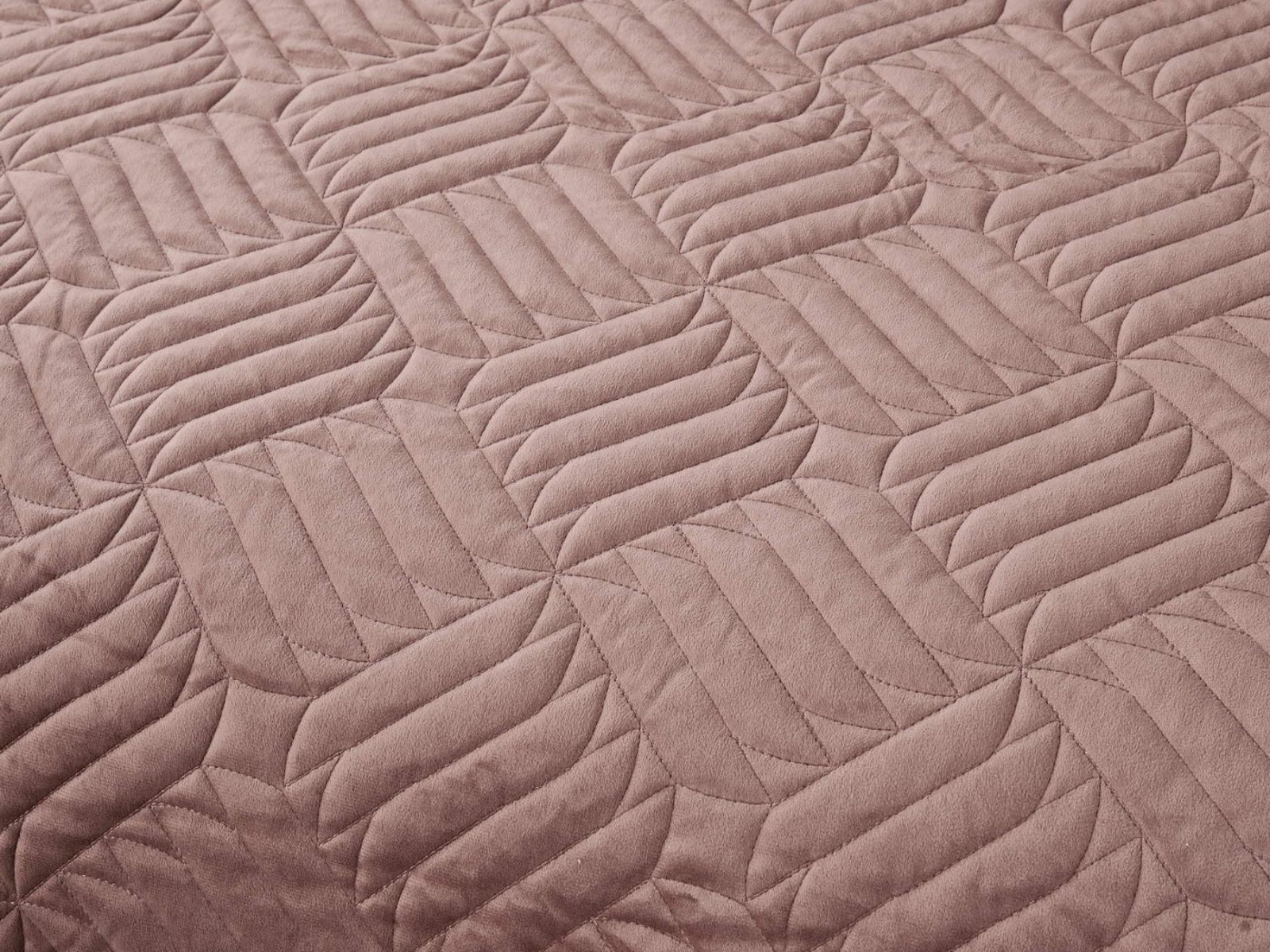 Покрывала выполнены в 10 оттенках: крем, мокко, пепельный, песочный, светло-бежевый, светло-серый, серый, темно-серый, чайная роза и черный. Стежка в виде геометрического орнамента подойдет к любому современному интерьеру. Из-за особого плетения, велюровая ткань покрывала отражает свет и красиво переливается при различном освещении.