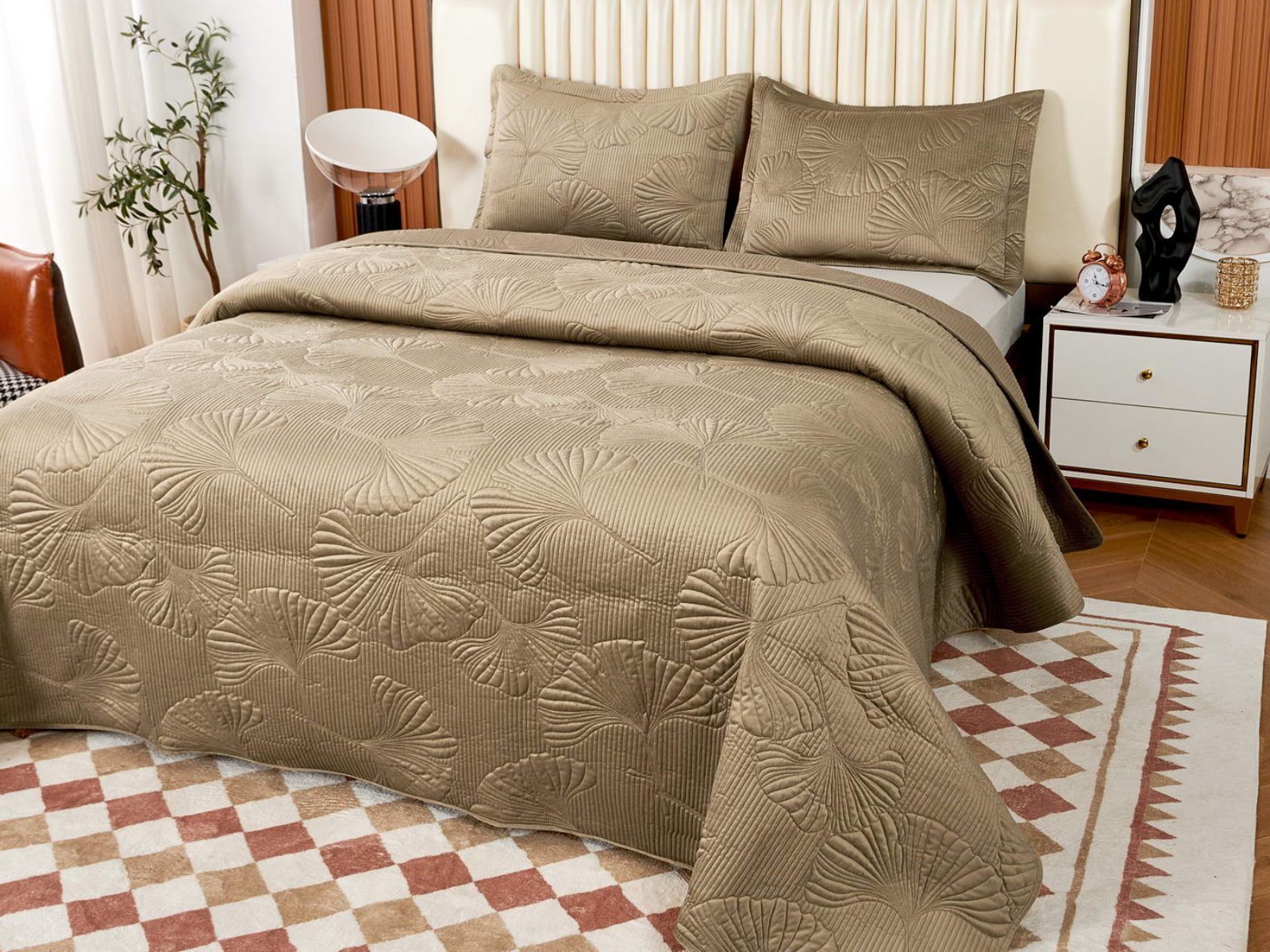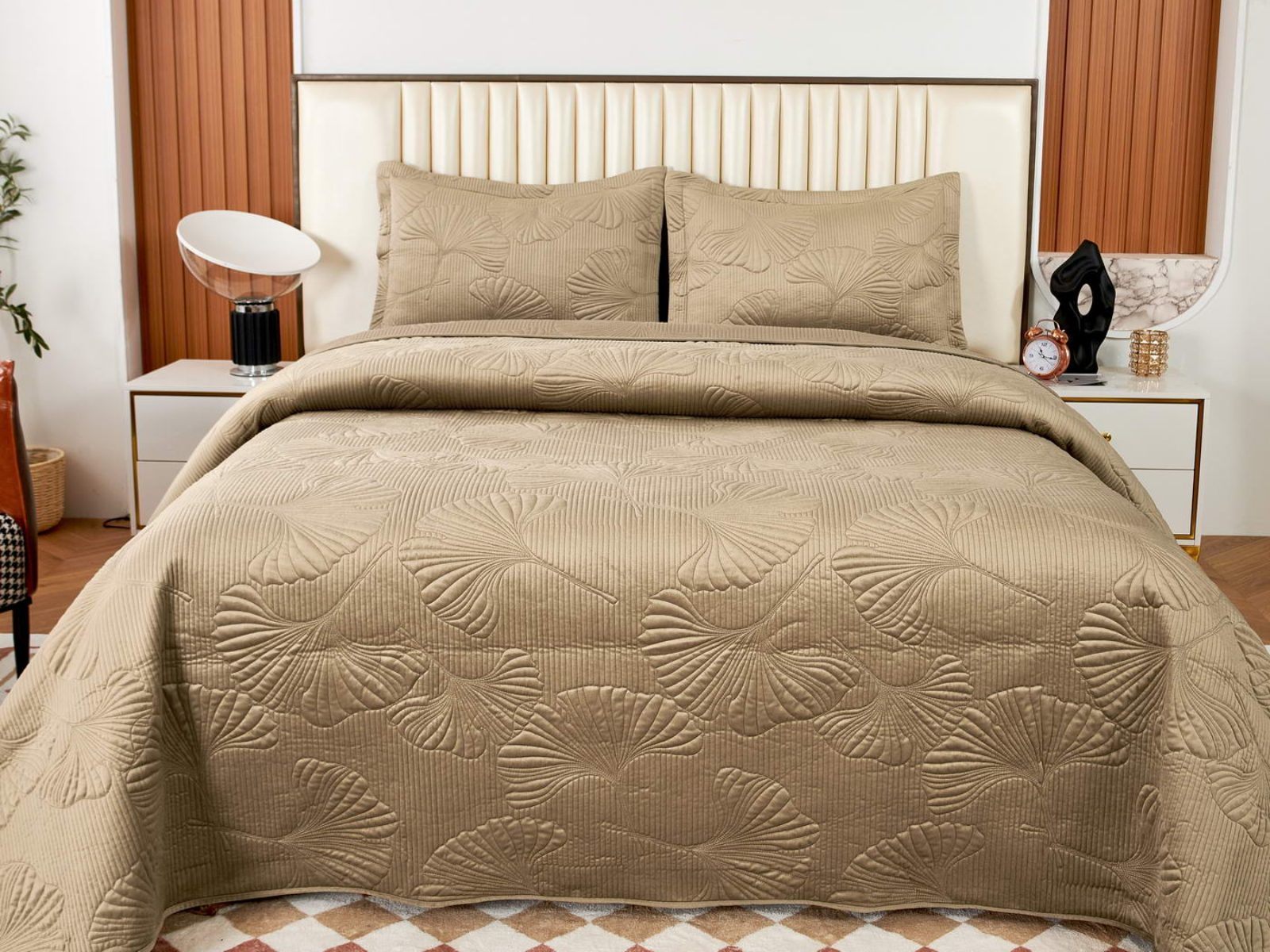 В комплект входят покрывало и одна либо две наволочки (50х70 см) из аналогичного материала в зависимости от размера. Каждый набор заботливо упакован в фирменную подарочную сумку.Пошив покрывала с кантом, наволочки с ушками 5 см. Наволочки на запахе. Вышивка на всем изделии.
