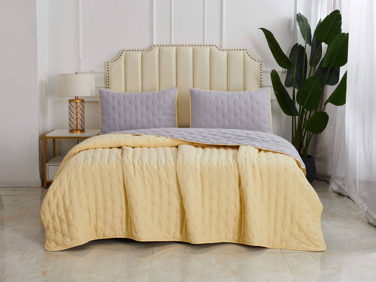 Двусторонние стеганные покрывала Броуди легкие и прочные. В комплект входят покрывало и одна либо две наволочки (50х70 см) из аналогичного материала в зависимости от размера. При желании покрывало можно использовать как легкое одеяло.