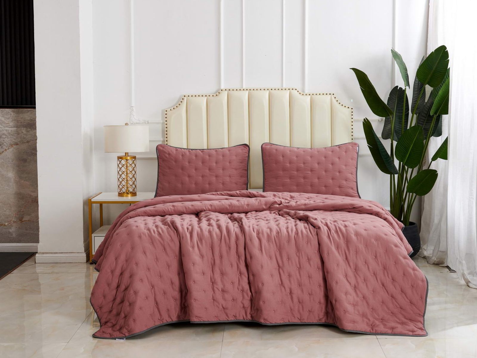 Двусторонние стеганные покрывала Броуди легкие и прочные. В комплект входят покрывало и одна либо две наволочки (50х70 см) из аналогичного материала в зависимости от размера. При желании покрывало можно использовать как легкое одеяло.