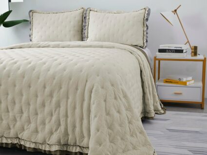 Двусторонние стеганные покрывала Элизабет выполнены из вискозы и хлопка, они легкие и прочные. В комплекте с покрывалом идут две наволочки, вы можете использовать покрывало по назначению, либо в качестве постельного белья. В любом случае, вы будете в восторге от этого комплекта!
