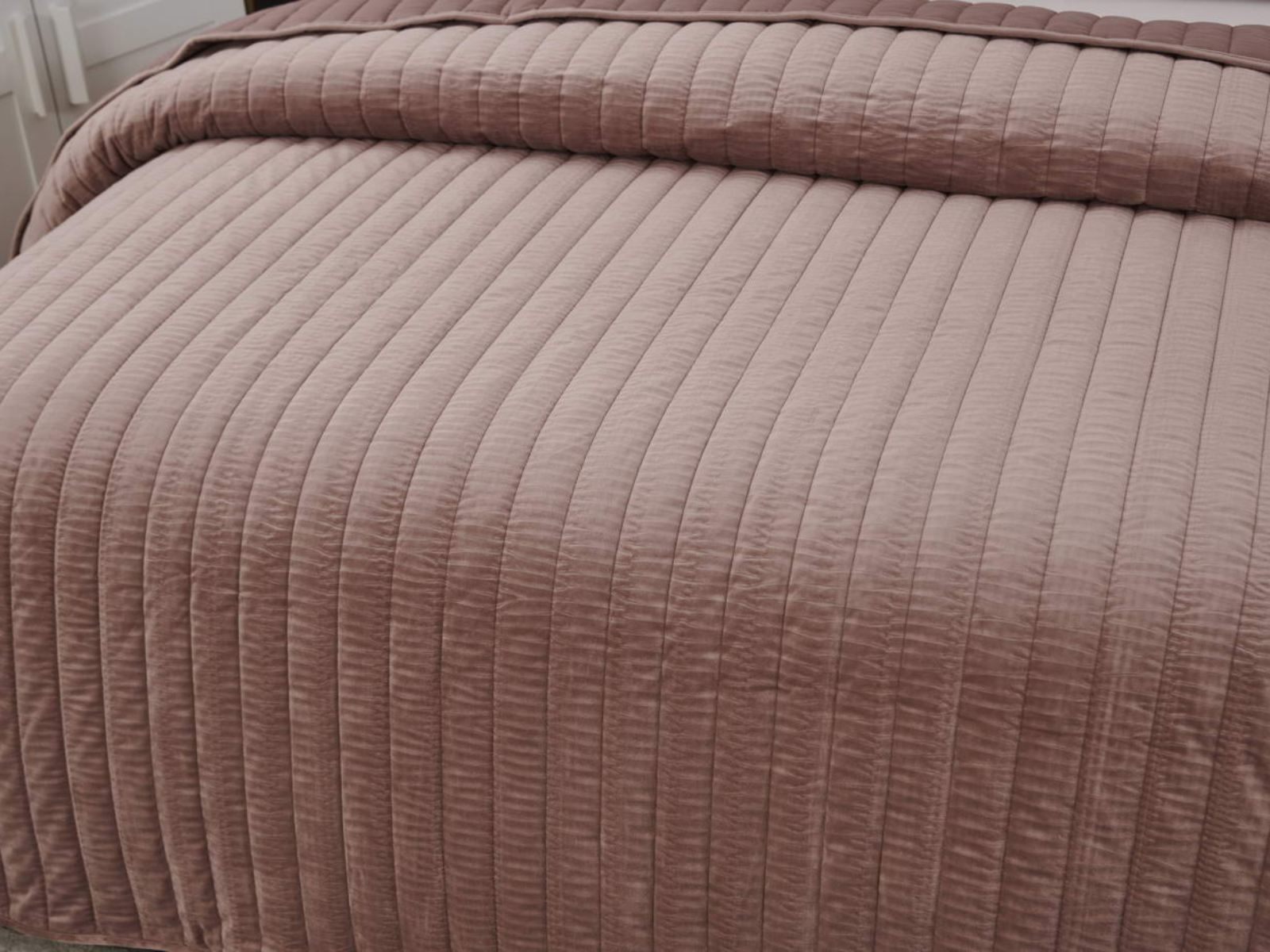 Величественный вид, мягкость материала, королевская роскошь – всё это идеально описывает новое покрывало Фердинанд. Оно выполнено из велюра на основе полиэстера и представлено в оттенках: чайная роза, молоко, бежевый, кофе, стоун, серый и мокко.