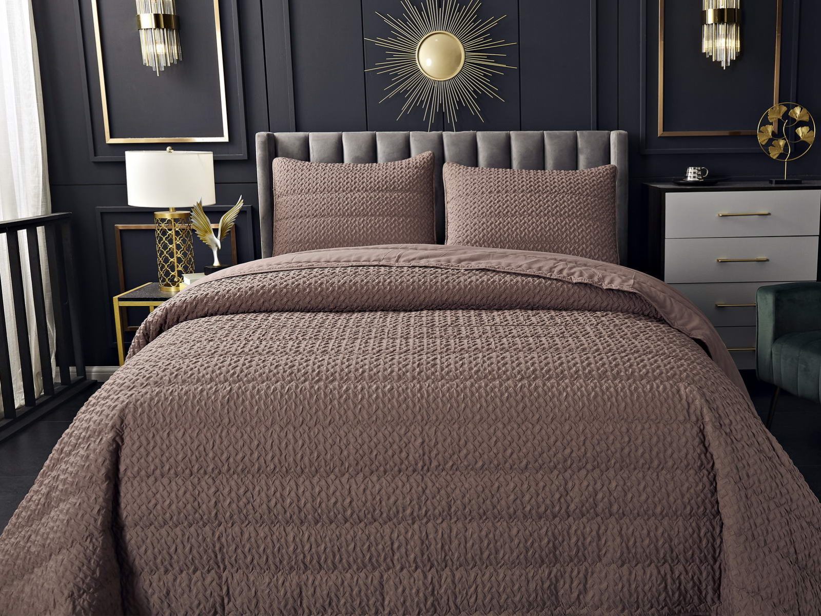 Если вы хотите придать уют вашей спальне, обратите внимание на покрывала коллекции Ирма. Выполненные в стиле модерн, в спокойных тонах, таких как бежевый, серый, молоко, пепел роза, пудра или мокко, они легко впишутся в ваше помещение.