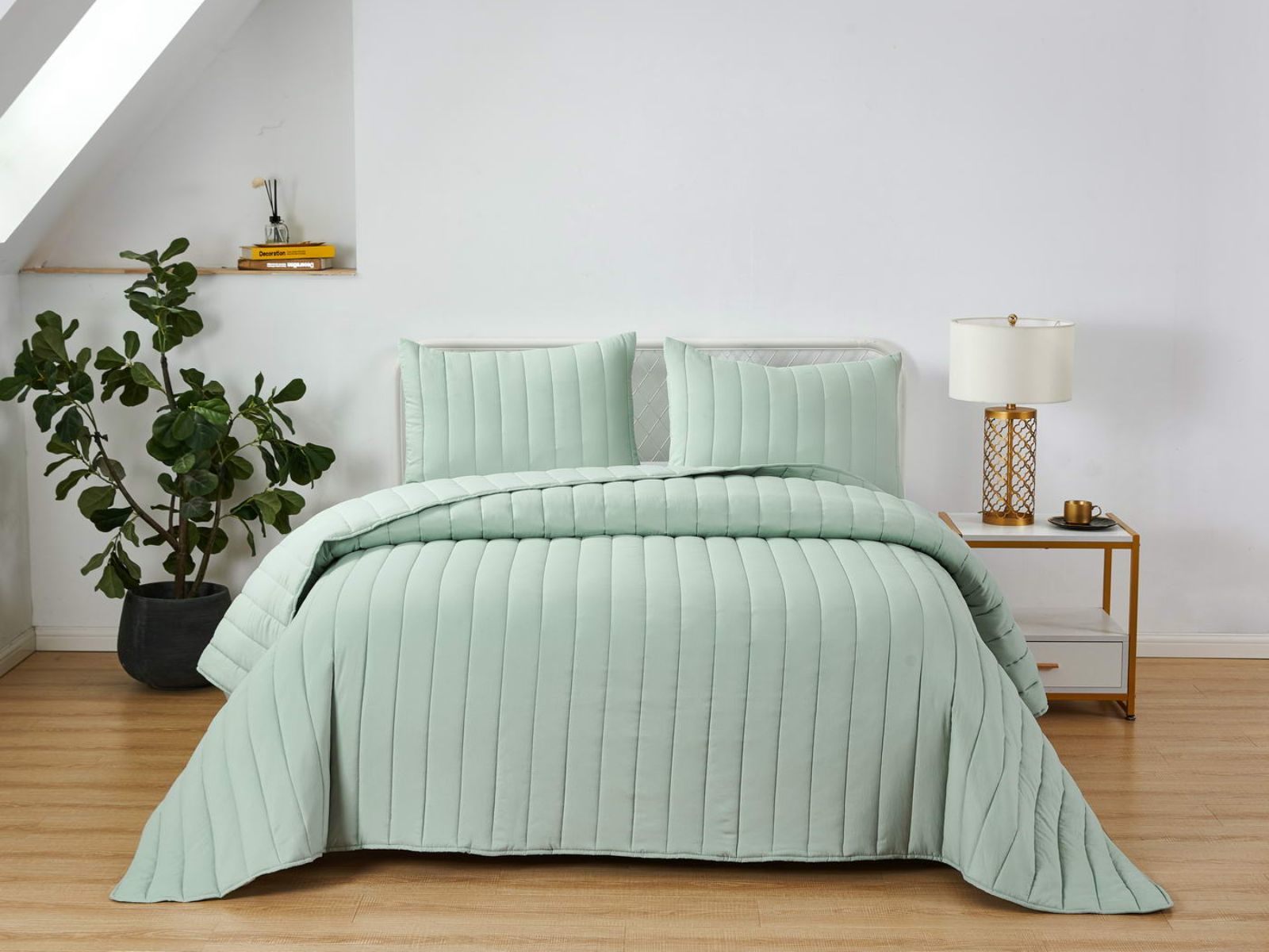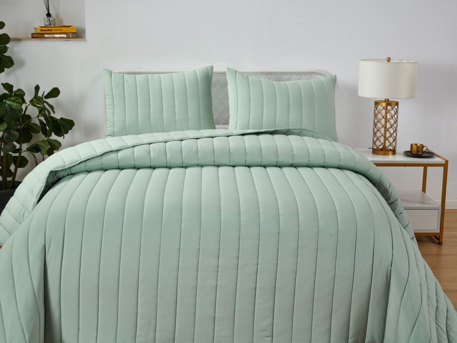 Это не просто практичное и долговечное покрывало. Это универсальное покрывало, которое подойдет к любому интерьеру и разнообразит его. Покрывало можно использовать как легкое одеяло. Оно выполнено в восьми спокойных оттенках: мокко, крем, лиловый, изумруд, розовый, бежевый, серый и пудра. Стеганое покрывало Микаэль прослужит очень долго, оно не полиняет и не вытянется. Стежка придает покрывалам не только прочность, но изысканность и изящество.