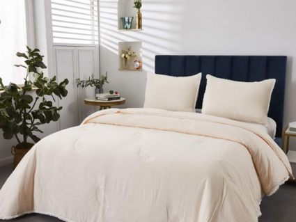 Помимо классической красоты дизайна эти изделия отличает практичность и долговечность. Покрывала Наоми изготавливаются из натуральных и синтетических тканей – вискозы и хлопка. Благодаря такому сочетанию изделия не теряют свою форму и цвет даже при долгом использовании, к тому же за ними легко ухаживать – их можно стирать в обычной машинке, не забывая только поставить режим бережной стирки.