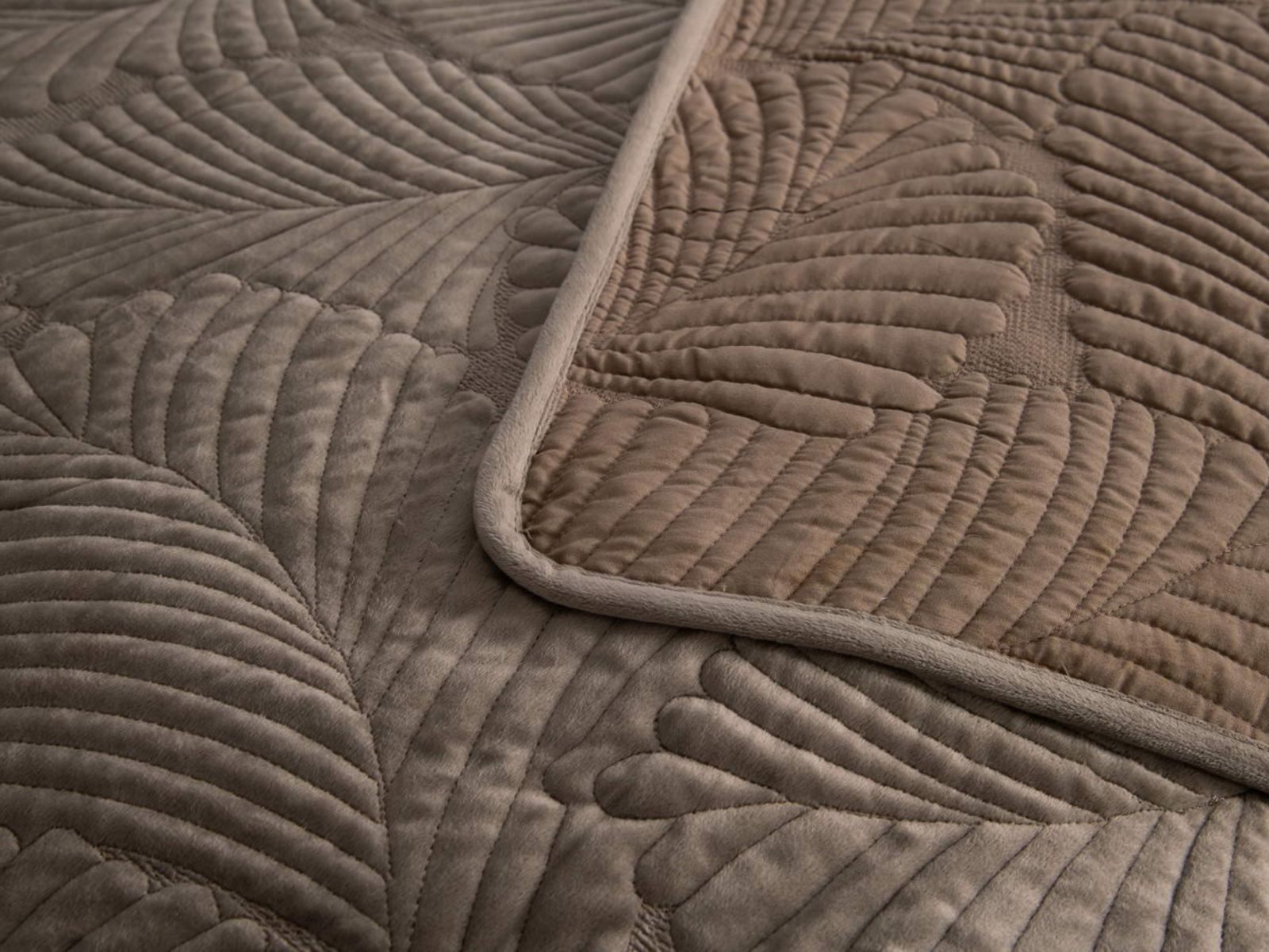 На создание велюрового покрывала Ноэль наших дизайнеров вдохновила ночь в середине лета, когда на раскаленную от жары землю спускается долгожданная прохлада. Роскошная вышивка в виде пальмовых листьев будет напоминать о тени, которую отбрасывают деревья.