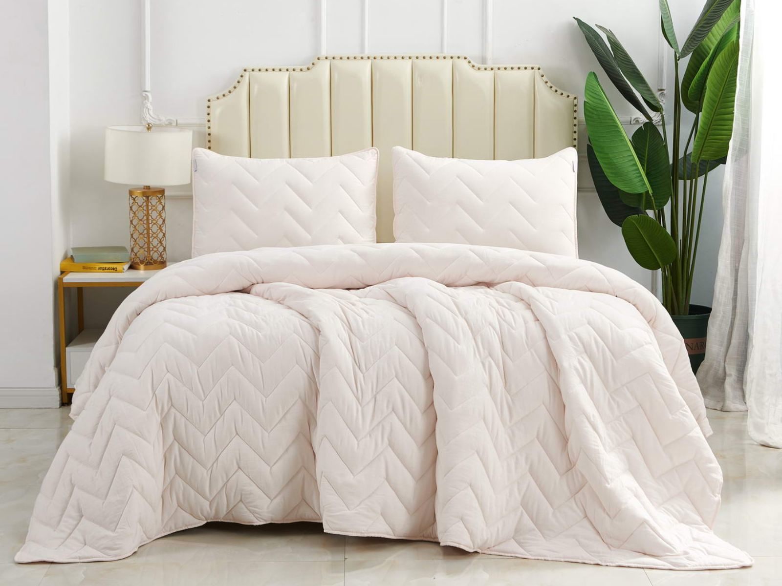 В комплект входят покрывало и одна либо две наволочки (50х70 см) из аналогичного материала в зависимости от размера. Изделия гипоаллергенны, они подходят детям и людям с чувствительной кожей. Покрывала и наволочки не линяют, сохраняют форму и цвет при многочисленных стирках и не выгорают на солнце. Изделия можно стирать в щадящем режиме при температуре не выше 30 градусов.