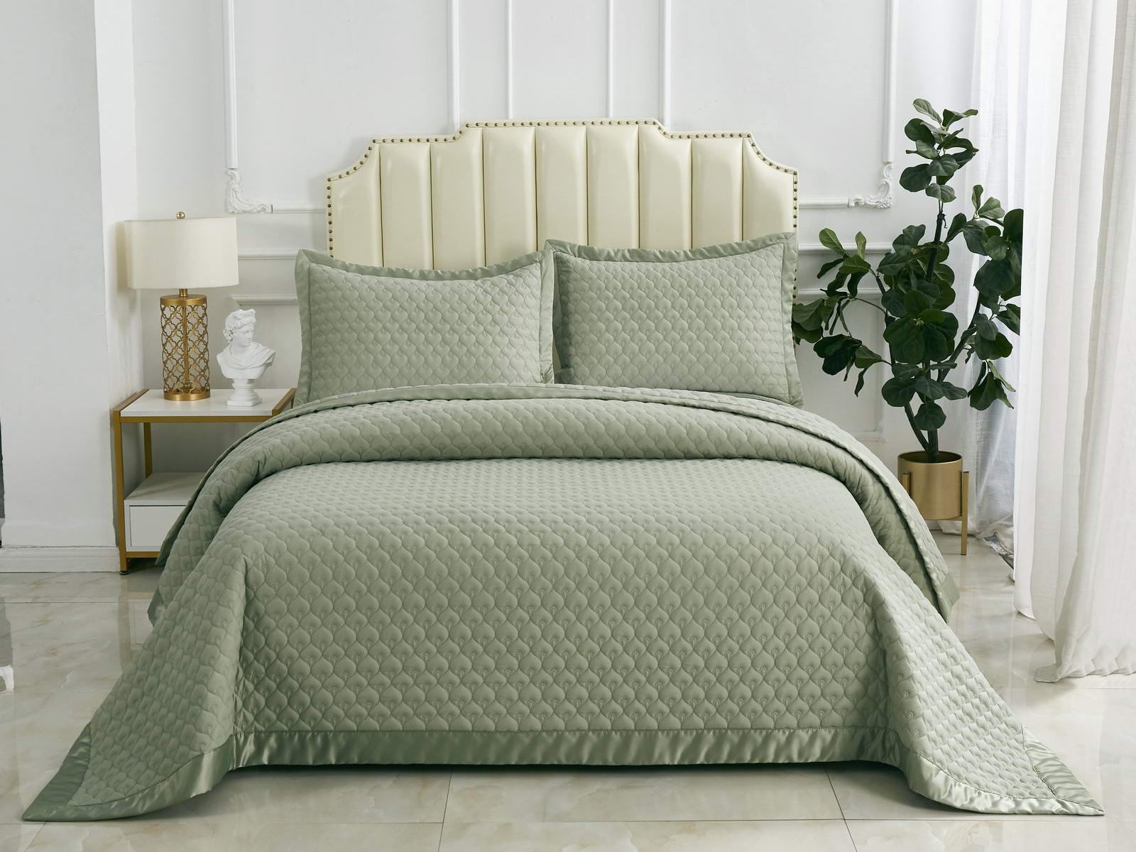 В комплект входят покрывало и одна либо две наволочки (50х70 см) из аналогичного материала в зависимости от размера. Изделия гипоаллергенны, они подходят детям и людям с чувствительной кожей. Покрывала и наволочки не линяют, сохраняют форму и цвет при многочисленных стирках и не выгорают на солнце. Изделия можно стирать в щадящем режиме при температуре не выше 30 градусов.