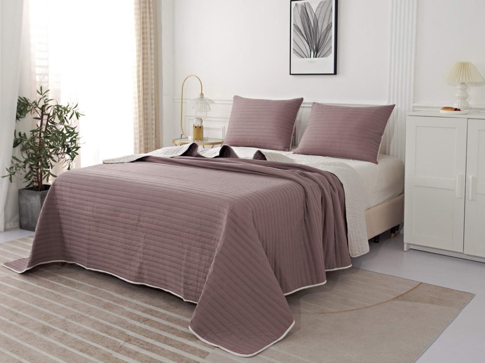 Покрывала двусторонние, оборотная сторона декорирована окантовкой, они выглядят сдержанными и универсальными. Изделия выполнены в восьми оттенках, подойдут для различных интерьеров, объединяет коллекцию потрясающее качество и приятный внешний вид.
