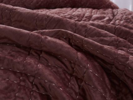 Покрывало Селена выполнено в девяти оттенках: пудра, антрацит, беж, изумруд, капучино, пепел роза, серебро, стоун, терракот. Они подойдут практически для любого интерьера, от классического, до модерна или романтического. Стеганое бархатное покрывало будет необыкновенно смотреться на вашей постели. В комплект входят покрывало и одна либо две наволочки (50х70 см) из аналогичного материала в зависимости от размера.