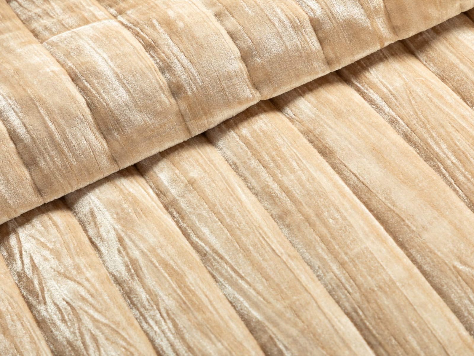 Лёгкое стеганное покрывало изготовлено из 100% вискозы. Стежка придает ткани объемную фактуру и задаёт вертикальный ритм. Декоративный кант в тон изделию добавляет изящества и стабилизирует ткань.
