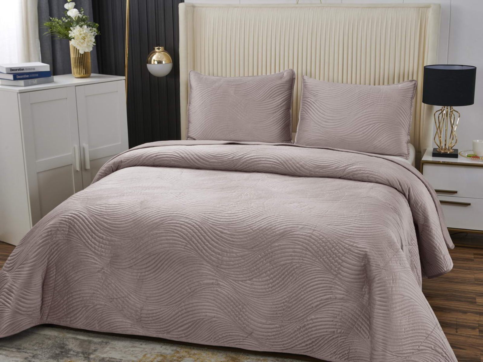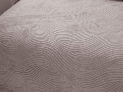 Традиционно в японском саду камней линии на песке символизируют отсутствие хаоса и спокойствие. Такой плавный узор напоминает размеренные потоки воды, которые оказывают на психику благоприятный эффект. Изящное покрывало Жизель с рисунком в виде подобных линий поможет обрести умиротворение, ведь в современном мире так важно уметь привести мысли в порядок. Помимо положительного воздействия на нервную систему, рисунок в виде волны придаст изысканности и утонченности Вашему интерьеру.