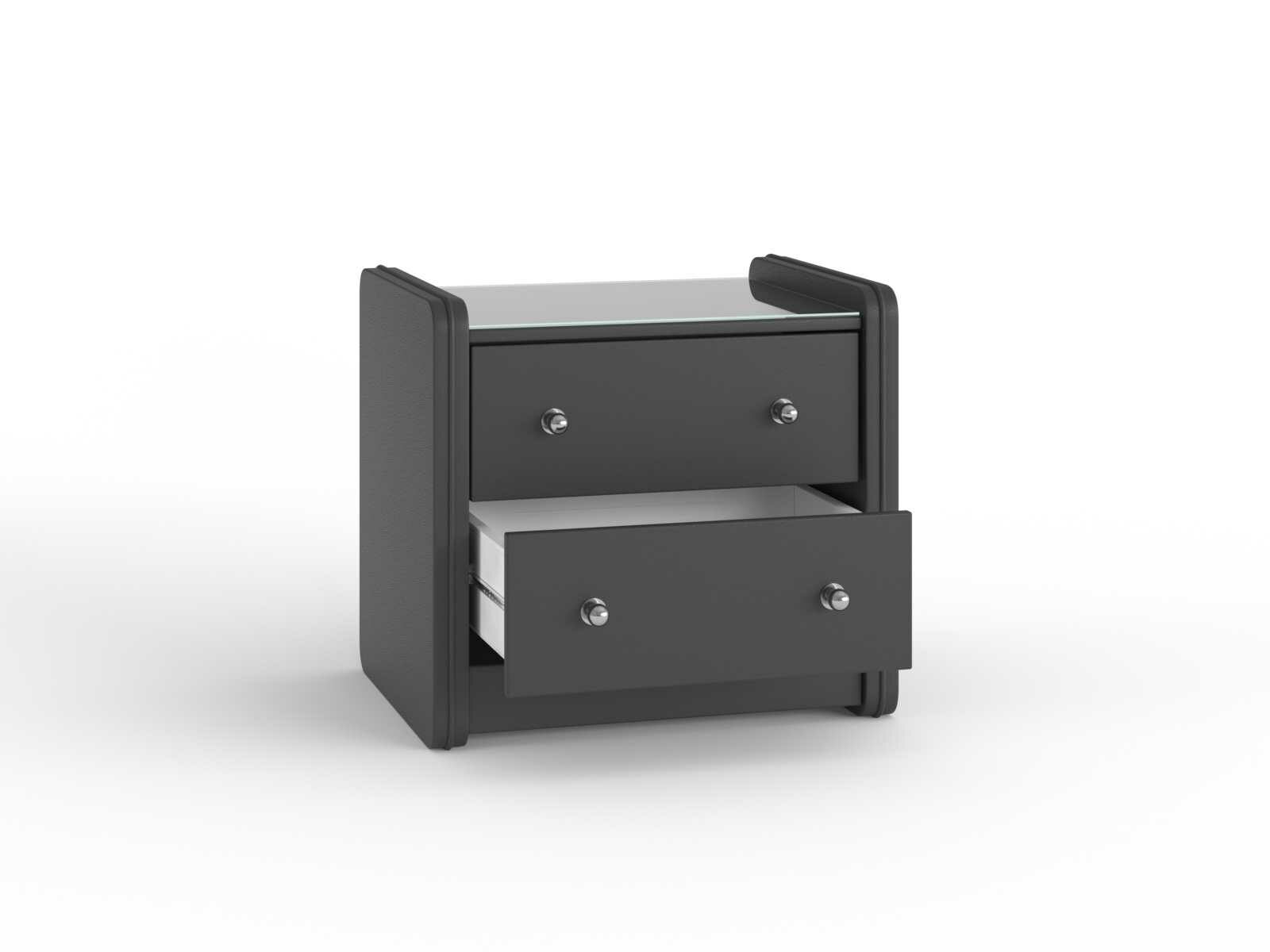 Тумба прикроватная Сандрига выполнена в изысканном классическом стиле. Обивка из высококачественного материала придает мебели особый шарм. Модель легко впишется в современные интерьеры и станет практичным дополнением меблировки спальни. На стеклянной столешнице расположится ночник, книга или чашка чая, а для необходимых под рукой мелочей предусмотрены два выдвижных ящика с ручками.