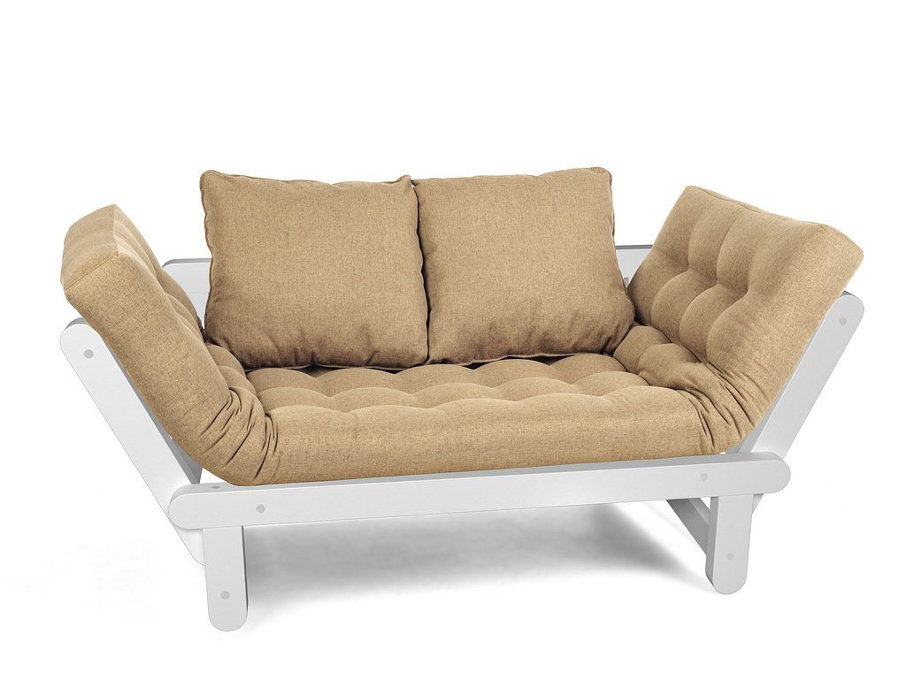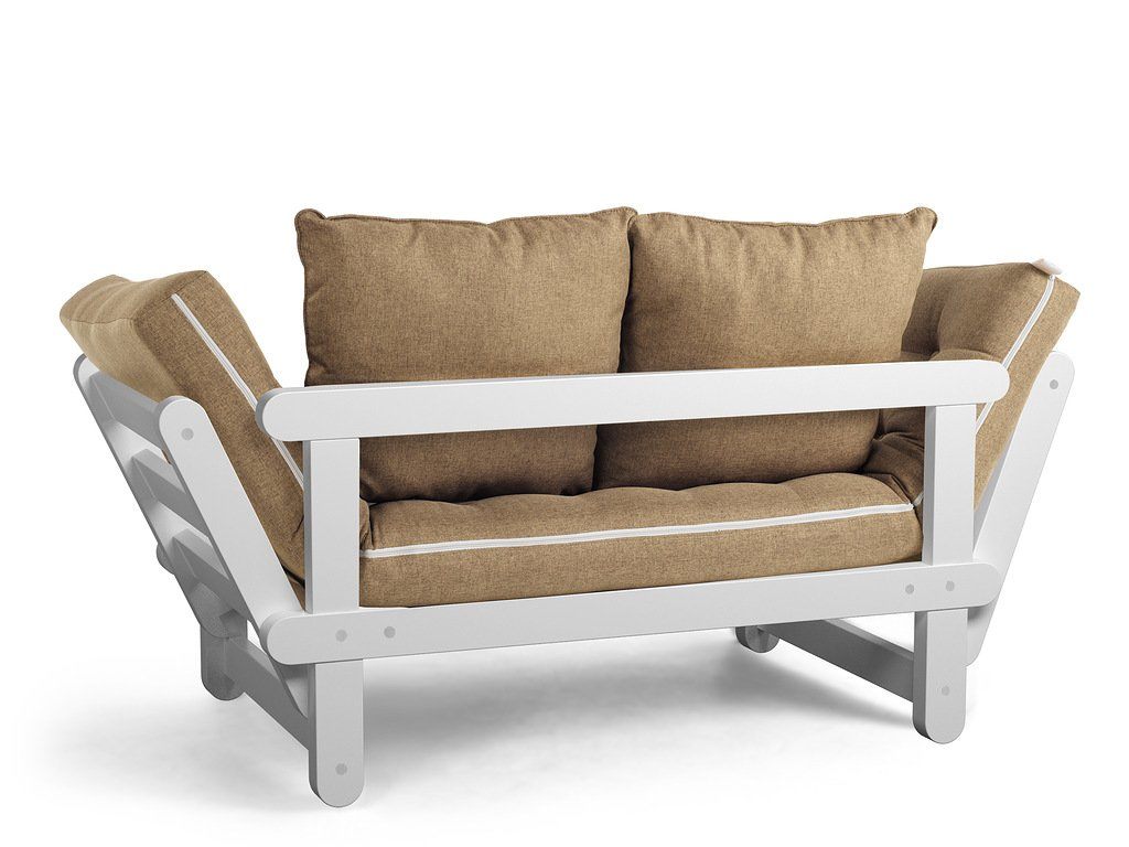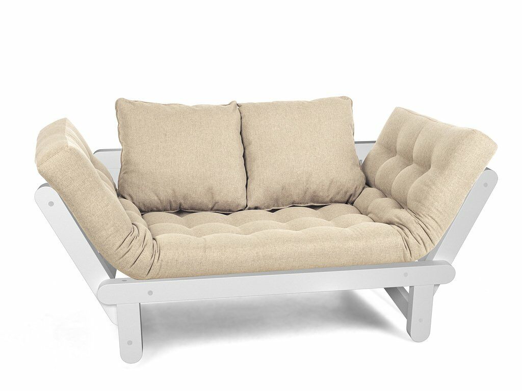 Каркас кушетки изготавливается из массива сосны. Откидные подлокотники имеют два положения, что позволяет, с комфортом разместится двум человекам.