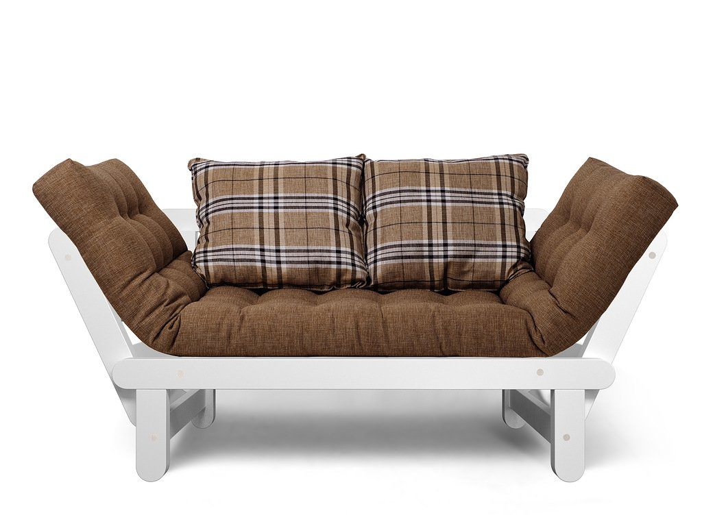 Каркас кушетки изготавливается из массива сосны. Откидные подлокотники имеют два положения, что позволяет, с комфортом разместится двум человекам.