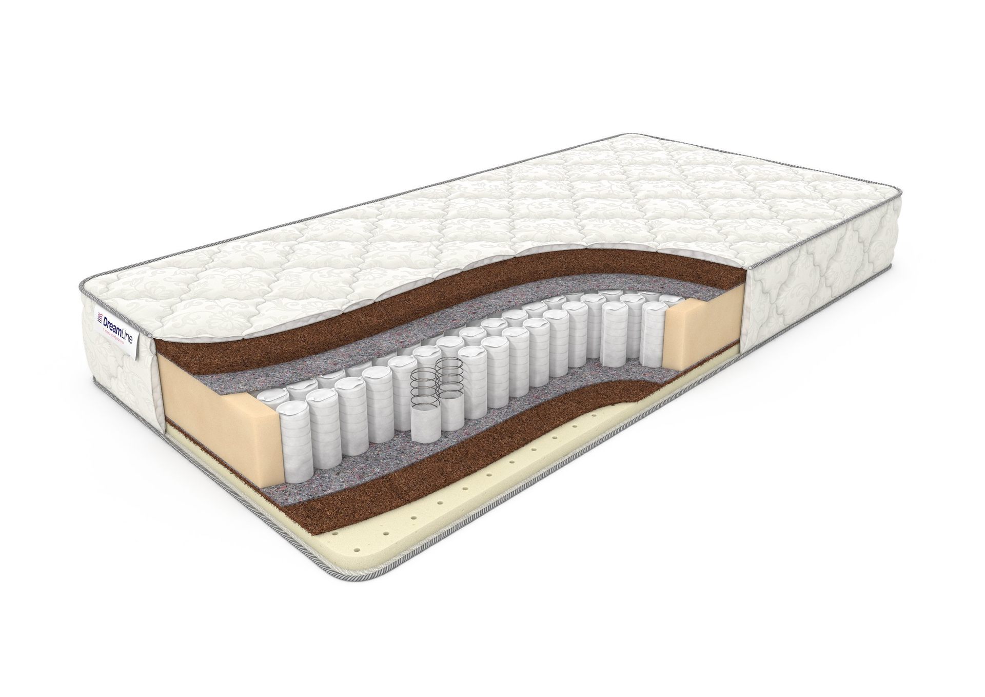 Матрас SleepDream Hard TFK, высота которого 22 см, выдерживает до 130 кг нагрузки. В основе его лежит прочный блок TFK, в котором установлены независимые друг от друга пружины, точечно реагирующие на вес спящего. Одна сторона модели имеет максимальную жесткость за счет толстого слоя кокосовой койры. Вторая сторона средней жесткости, благодаря балансу двух материалов - койры и натурального латекса. Чехол матраса SleepDream Hard TFK из хлопкового жаккарда, простеганного на антиаллергенном холконе 250 гр./м2, по умолчанию не имеет молнии, однако она может быть бесплатно вшита по желанию покупателя.