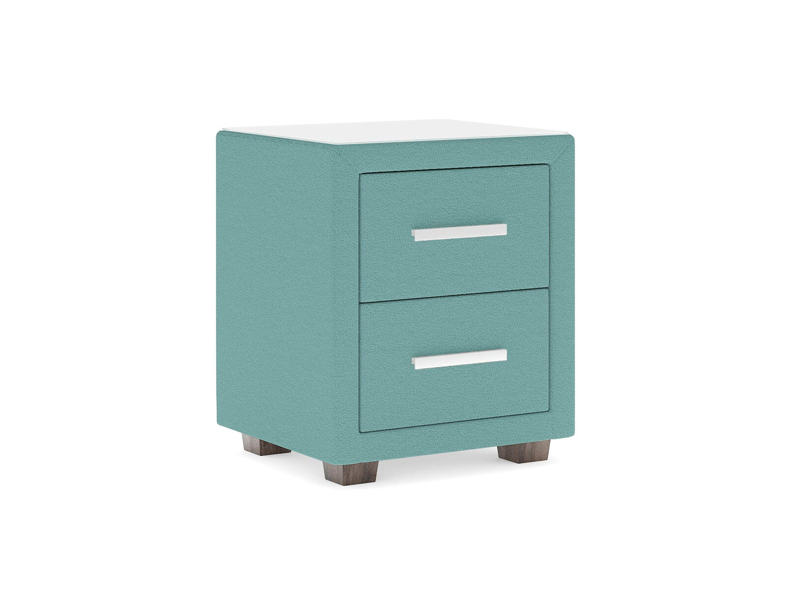 Прикроватная тумба с двумя выдвижными ящиками сочетается с любыми моделями кроватей, органично вписывается в интерьер практически любого стиля. Каркас тумбы выполнен из ДСП. Каркас тумбы и фасад ящиков покрыты обивочным материалом. Для удобства использования и продления срока эксплуатации, рекомендуется использовать стеклянную накладку. Накладка используется в качестве столешницы для тумбы и защищает ее от повреждений и загрязнений. Стеклянная столешница заказывается дополнительно.