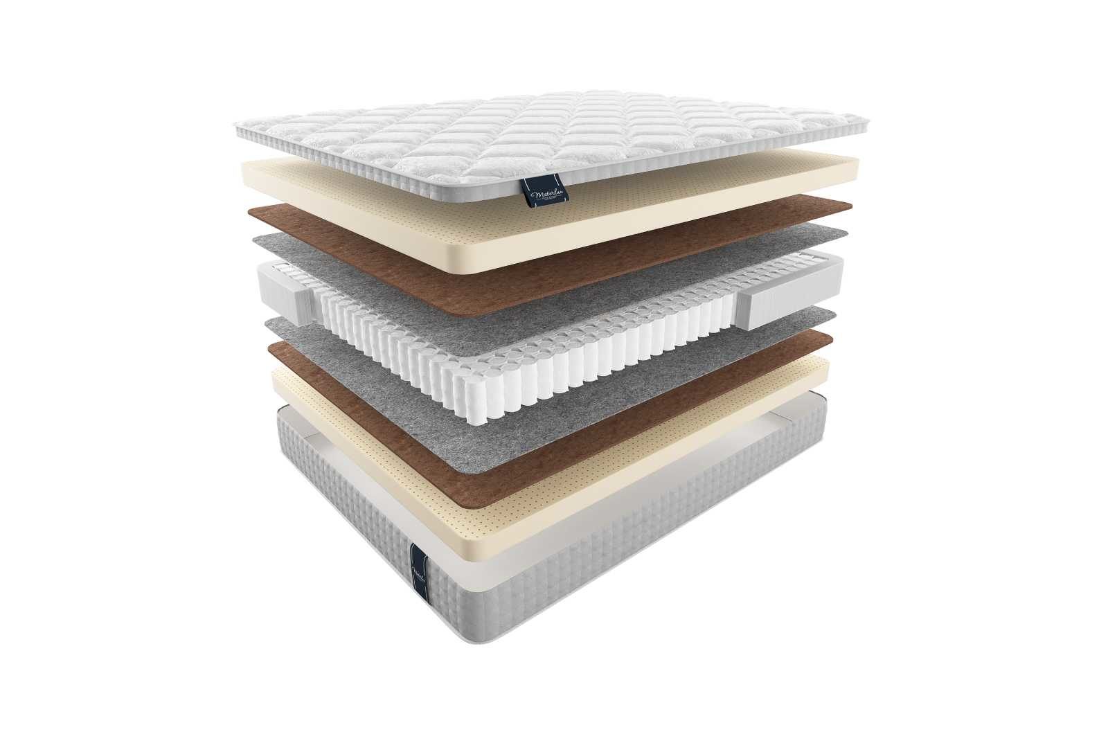 Внутри спальной принадлежности скрываются такие ценные компоненты как натуральный латекс и койра кокоса. С каждой из сторон установлено сразу по 7,5 см латексной пены, что является показателем высокого комфорта. Чем больше толщина – тем лучше анатомическая подстройка материала.