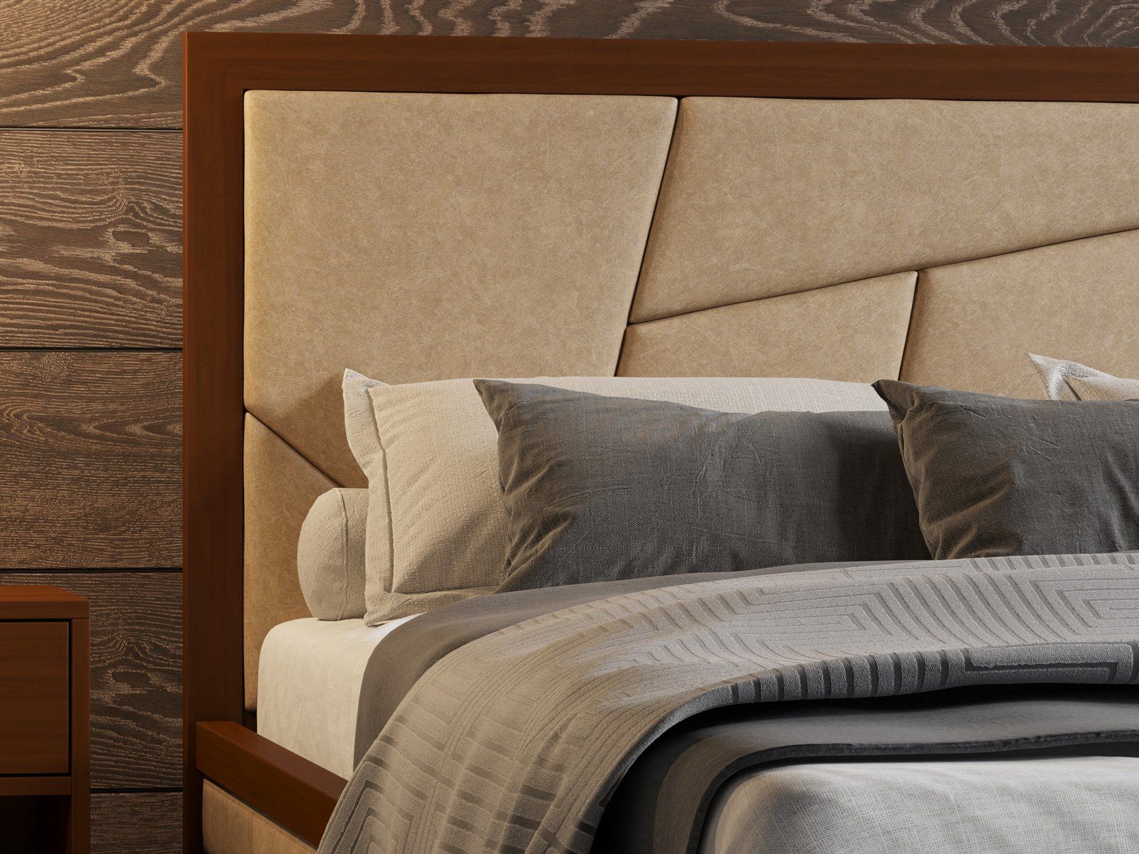 Замша — современный материал, придающий мебели эстетичный внешний вид. А главное её отличие от обычной ткани — то, что летом она отдаёт прохладу, а зимой тепло, благодаря чему вы почувствуете невероятный комфорт во время использования кровати Венсе. Красивое сочетание натурального качественно обработанного и покрашенного дерева с матовой поверхностью замши придаст интерьеру вашей спальни изысканности и совершенно нового антуража, следуя всем современным трендам. Предусмотрено три цветовые вариации ткани на выбор (коричневый, синий, бежевый)..